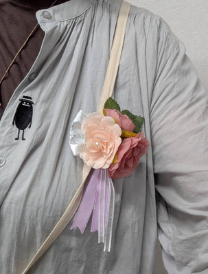 この写真は、当施設(ダンケ)で作ったアクセサリーを付けてくださってるお客様の写真で、お客様からご提供いただきました。